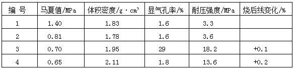 大、中型高爐用的炮泥配合比:棕剛玉或白剛玉20%~25%黏土和絹云母20%~25%,焦炭粉和SiC和30%~38%,焦油瀝青8%~10%,石墨2%~5%,另加13%~16%的結合劑和適量外加劑。在熱的輪碾機中混煉,時間為15~50min。炮泥性能,見下表。該炮泥也稱做無水炮泥。