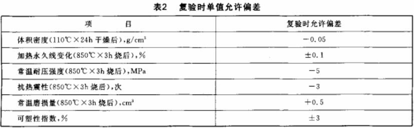 7.2.3 常溫耐壓強度、常溫磨損量、可塑性指數為驗收時的檢驗項目。