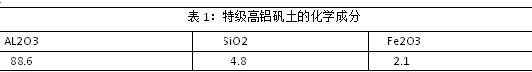 普通的高鋁質材料和以SiO為主要成分的材料,由于AL易于SiO2發生反應,不宜作為熔鋁爐用耐火材料,因此我們選著使用特級高鋁礬土作為主要的材質。材質指標見下表1
