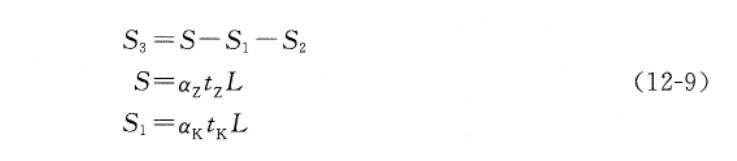 由圖12-8可知:耐熱鋼托磚板托住托磚,托磚托住耐火磚和隔熱磚,耐火磚和上一塊托磚板之間的縫隙中塞有輕質耐火物。這就吸收了熱膨脹,防止了直墻的損壞。根據式(12-1),可以推算得出膨脹縫的高度S3應滿足下式。