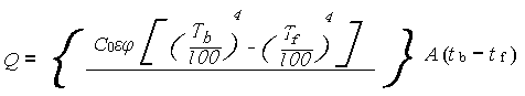 式中,Q-傳熱量(W);h-爐墻外側(cè)對(duì)流換熱的表面?zhèn)鳠嵯禂?shù),W/(m2·K);A-爐墻面積(m2);tb-爐墻外壁溫度(℃);tf-爐墻外側(cè)空氣溫度,即環(huán)境溫度(℃);C0-絕對(duì)黑體的輻射系數(shù),5.68 W/(m2·K4);ε-爐墻外壁的黑度;φ-輻射角系數(shù);α-對(duì)流輻射綜合傳熱系數(shù),W/(m2·K)。