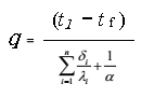 熱流密度是向量,由高溫到低溫的方向?yàn)檎c溫度梯度相反。爐墻單位面積的熱損失,即爐膛內(nèi)壁通過(guò)爐襯傳給加熱爐周圍環(huán)境的熱流密度數(shù)值為: