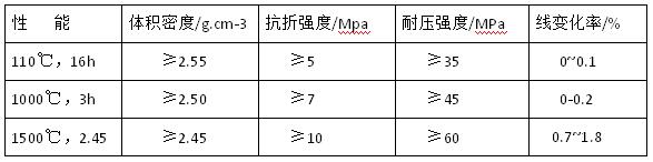 根據以上的檢測結果在實驗室選用河南當地的二級礬土熟料做骨料,加入部分Sic及2%左右的Cr2O3進行反復試驗。研制的耐火澆注料的化學組成(%):AL2O3≥65,SiO2≥25, SiC ≥9,Cr2O3≤2,CaO ≤1,物理性能見表3.