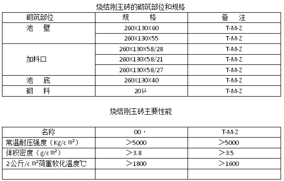 1.在玻璃頁(yè)面處使用燒結(jié)剛玉磚時(shí)應(yīng)用風(fēng)冷卻,使池壁外表面溫度維持在50~100℃,以保證使用效果。在1400℃以下工作可采用保溫措施,如池窯底部。