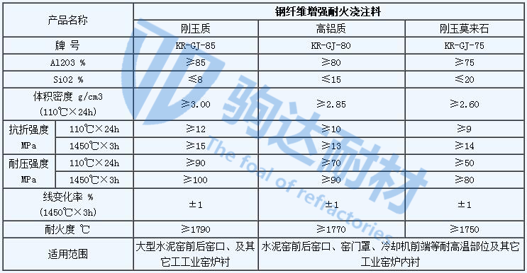 KR系列鋼纖維增強耐火澆注料采用純鋁酸鈣水泥結(jié)合,組配剛玉、氧化鋁粉、鋁礬土、硅線石、莫來石等,添加超微粉及外加劑,加入適量不銹鋼鋼纖維增強,現(xiàn)場加水?dāng)嚢韬笫┕ぁ?/FONT>