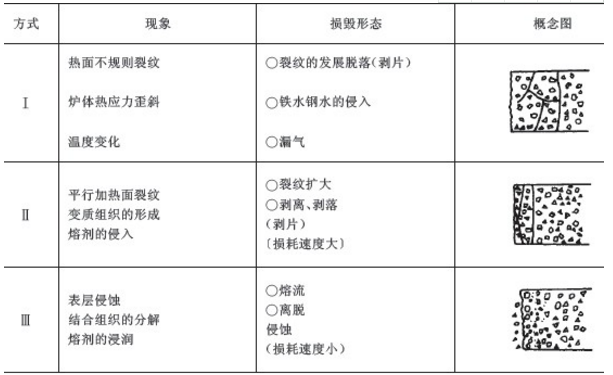局部的高溶解度、高蒸氣壓力或低粘性相的存在或生成;由磨損造成的損耗;粘土質耐火磚在使用過程中的損毀方式則可以歸納為三種基本形態。