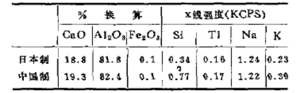 X—衍射分析所測定的中、日水泥的礦物組成,它們的主晶相都是CA,α-Al2O3以及少量的C12A7。