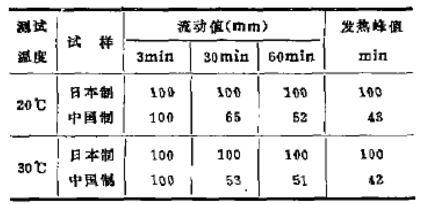 中,日兩種水泥的化學組成及礦物組成相似,但硬化特性差別較大,原因是這兩種水泥中添加的外加劑不同,因此釆用國產水泥的最大要點就是要尋求一種單一的或組合的外加劑,這種外加劑應具有減水、緩凝、 高強等幾項功能。