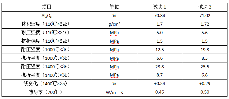 (2) 不同體積密度的輕質骨料對澆注料的指標有較大的影響,使用何種牌號的原料應慎重選擇。