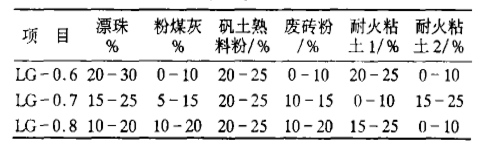 表2 隔熱耐火磚的配比