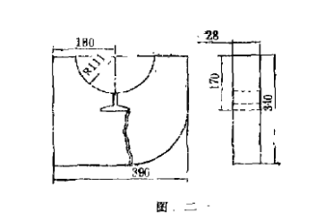 某廠因煤閘板前聯(lián)箱保護吊掛磚即斷裂脫落而被迫停爐,由于該部位結(jié)構(gòu)原因(見圖一前聯(lián)箱吊掛拱及圖二特型吊掛轉(zhuǎn)),聯(lián)箱吊掛磚每塊重達16公斤,并依靠“丄”型溝槽吊著自身重量和承擔其上部部分磚的壓力。聯(lián)箱在熱狀態(tài)下工作時會發(fā)生熱膨脹,再加上前述原因,便發(fā)生了特型耐火磚在薄弱處的斷裂(見圖二)。前聯(lián)箱保護吊掛磚共48塊,運行中發(fā)現(xiàn)有幾塊掉磚,停爐檢査時又發(fā)現(xiàn)其它未掉下來的轉(zhuǎn)多數(shù)都有裂縫,如果換磚就需拆掉前墻,更換后還必須按要求時間烘妒,而且也難保不再掉磚,這將措成較大的經(jīng)濟損失和材料浪費。