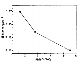 圖1 尖晶石/ZrO2對體積密度影響