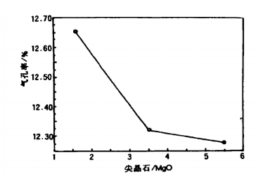 圖4 尖晶石/MgO對氣孔率的影響