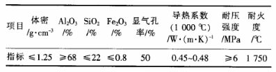 表4 輕質莫來石澆注料實測指標