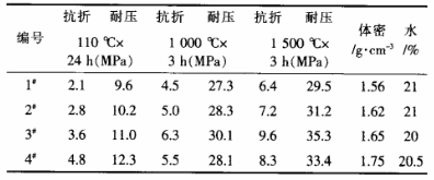 (2)輕質澆注用微粉和結合劑合理調整,對產品的主要性能產生影響較大。