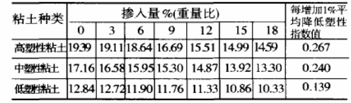相同燃料摻入不同土質(zhì)對(duì)塑性指數(shù)的影響 表2