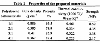 材料的薄壁結構使材料獲得較小的體積密度和較大的氣孔率,也是材料獲得較小熱導率的前提條件;材料內晶粒細小,結合緊密,使材料在獲得較大氣孔率的同時獲得盡可能高的強度,對提高材料使用性能和壽命十分有益;孔壁中的封閉氣孔,有利于進一步降低材料的熱導率;因此,材料的這種顯微結構,使材料具有低密度、高強度、低導熱的優異性能。