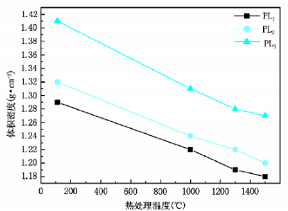 3.1鋁酸鈣水泥及熱處理溫度對材料體積密度的影響