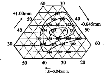 本試驗的顆粒級配經多次組合試驗確定其顆粒與細粉的比例為(60~70):(40~30)。