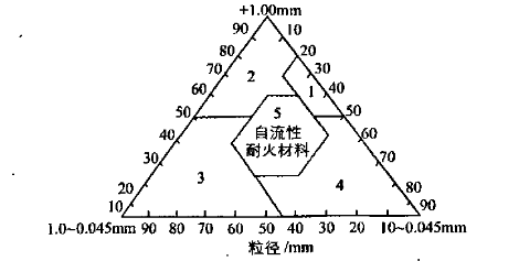 自流澆注料是根據流變學原理開發(fā)而成的。是一種屈服值較低,并具有一定塑性粘度的粘塑性材料。因此它要求具有合適的粒度組成,骨料與基質的比例要適當。如圖2所示。