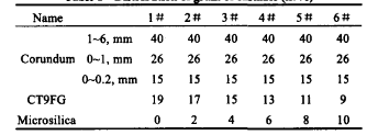 表1 澆注料的顆粒級(jí)配