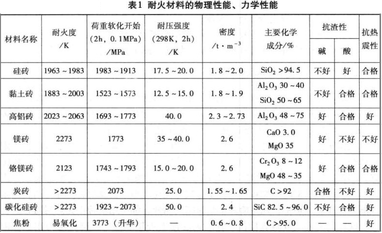 耐火材料有硅磚、粘土磚、碳化硅磚、石墨磚、高鋁磚、鎂磚、炭磚、冶金焦粉、電極糊、鋯英石制品、氧化鋯制品、生熟粘土粉等。