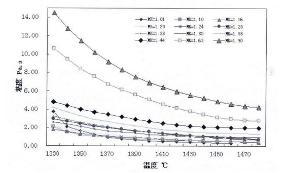 圖1 不同酸度系數(shù)的熔渣粘度