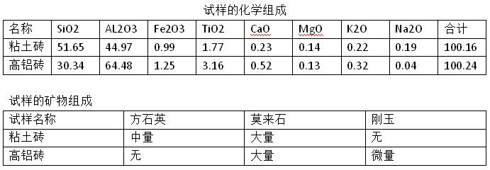 本工作所采用的高鋁磚和粘土磚的試樣,其礦物組成,根據前面所列成分表,主要為莫來石:粘土磚中還有方石英存在,而在高鋁磚中則由微量剛玉晶體。此外,除鐵鈦等尚可能形成少量晶體之外,其余雜質均應與SiO2和AL2O3形成玻璃物質。其玻璃態物質也以含SiO2為主。