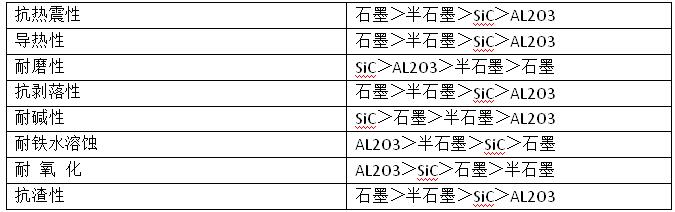 碳化硅爐眼磚的優(yōu)點(diǎn)材質(zhì)選擇及其性能:按出鐵口的特性要求,對(duì)常用的幾種耐火材料進(jìn)行比較如下: