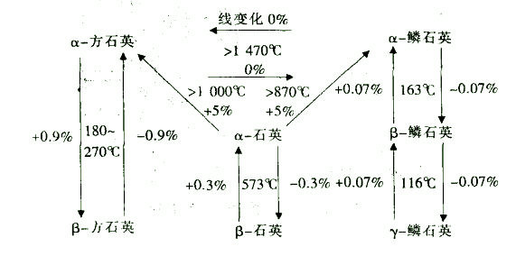 窯體的每層襯都是由一層致密層和一層或多層隔熱耐火材料層組成。隨著窯操作者降低操作 能源成本力度需求的增加,更需要使用體積密度更低、高溫隔熱性能更好的隔熱材料。隔熱硅磚都會經歷在燒成期間石英轉變為方石英和鱗石英的每個階段以下是轉變過程。